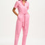 Meet Billy our standout retro jumpsuit, cut with a tailored boilersuit shape. The Billy features a half sleeve shirt upper, an exposed front zip and straight legs. The sharp shape has a Seventies feel, amplified by the high contrast black base and the graphic leopard embroidery on the bust pocket. The Billy has streamlined pockets on the bust and sides.