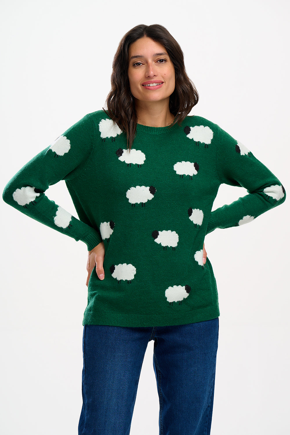 Stacey Jumper - Green, Autumnal Star Sleeves