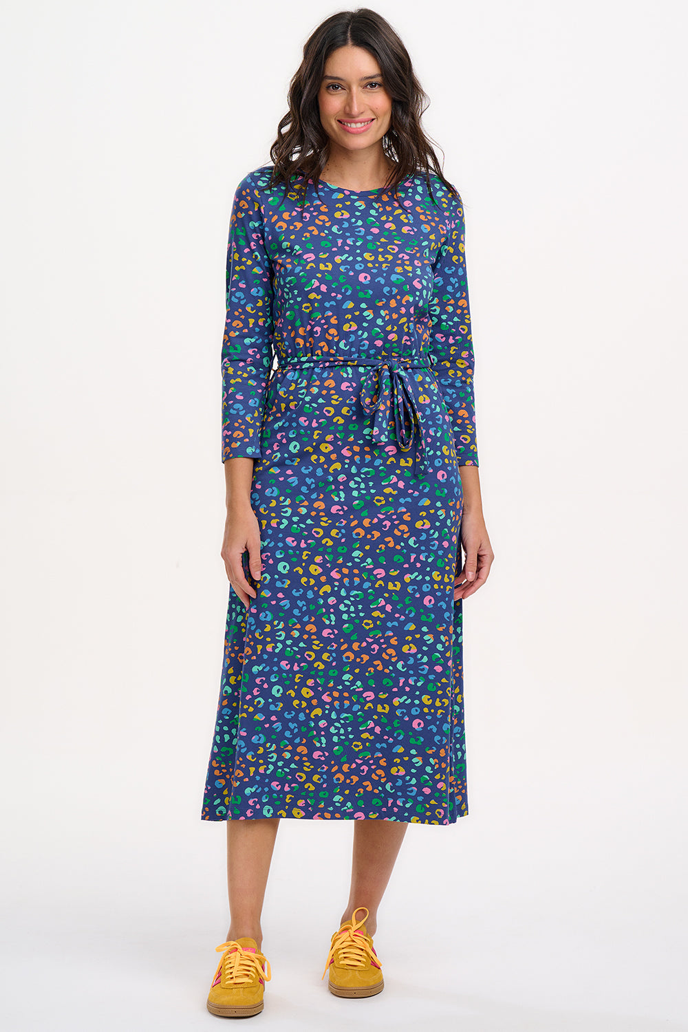 Pernella Midi Jersey Dress - Bright Navy, Mottled Leopard