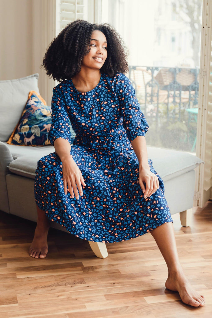 Bellatrix Maxi Tea Dress - Black, Rainbow Star Confetti