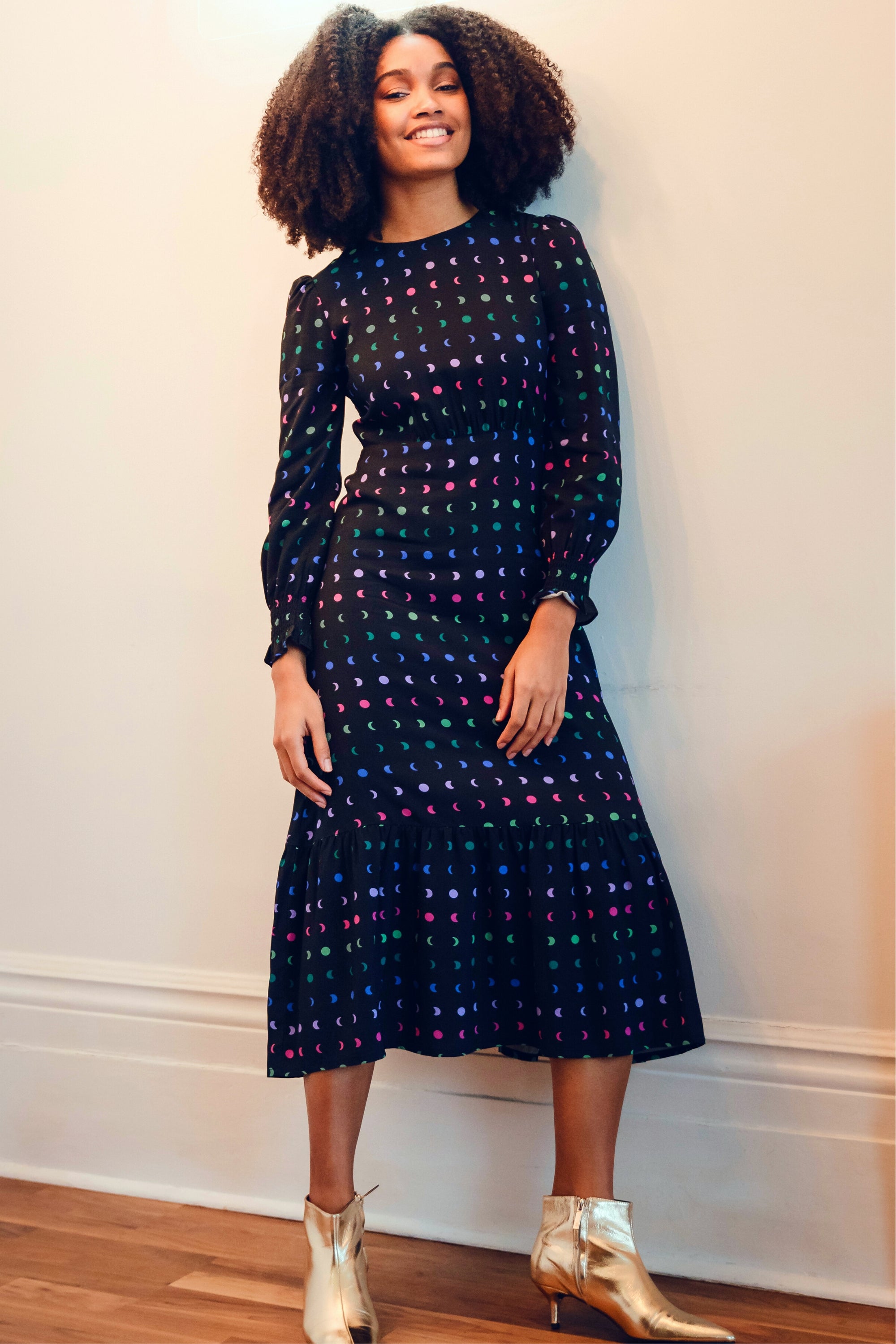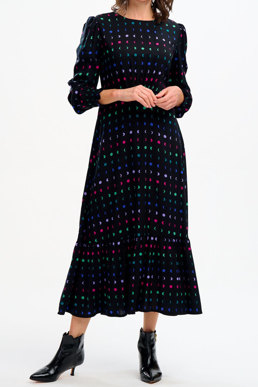Isabella Maxi Tea Dress - Black, Moon Phases