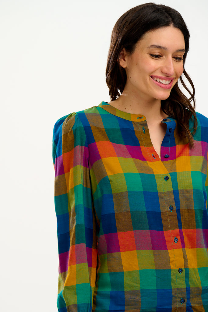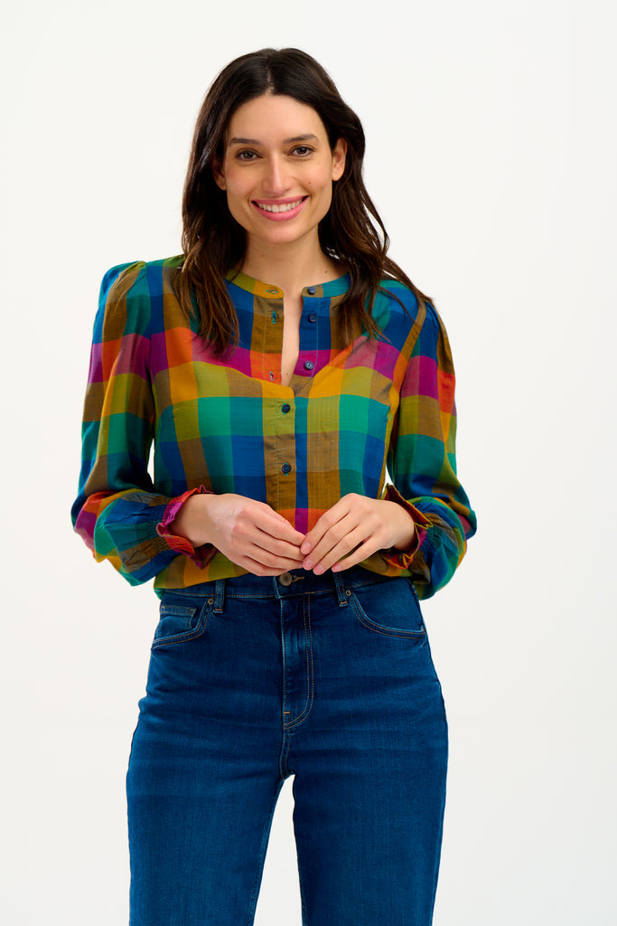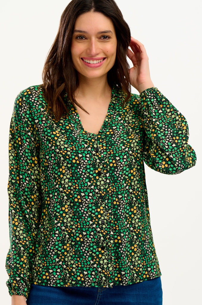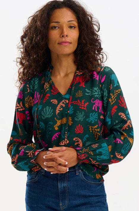 Vivi Frill Blouse - Green, Rainbow Pebbles