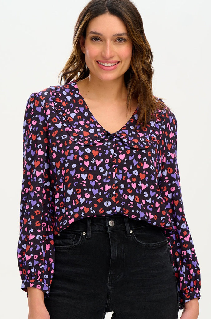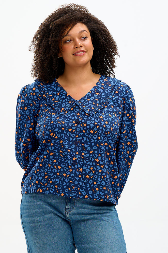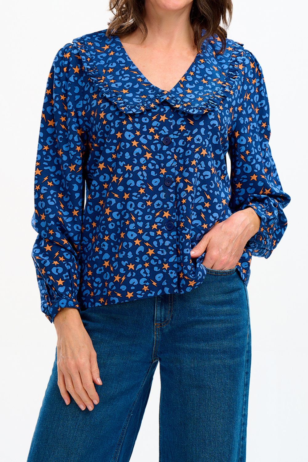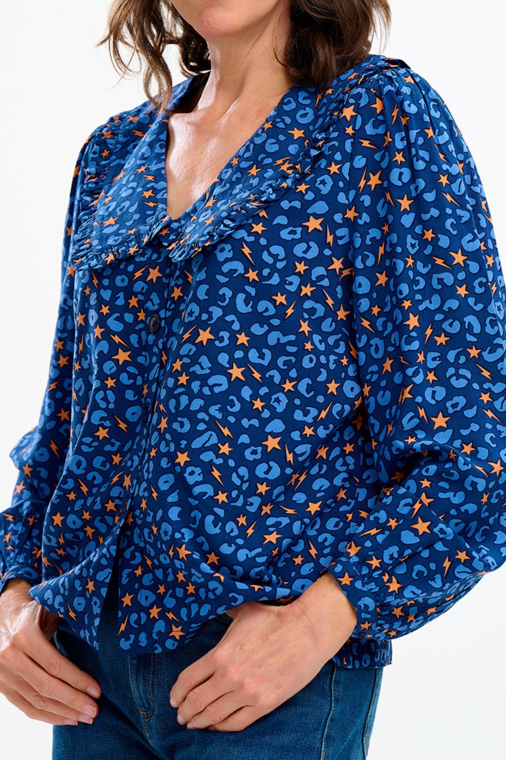 Henna Frill Blouse - Blue, Star Lightning Animal