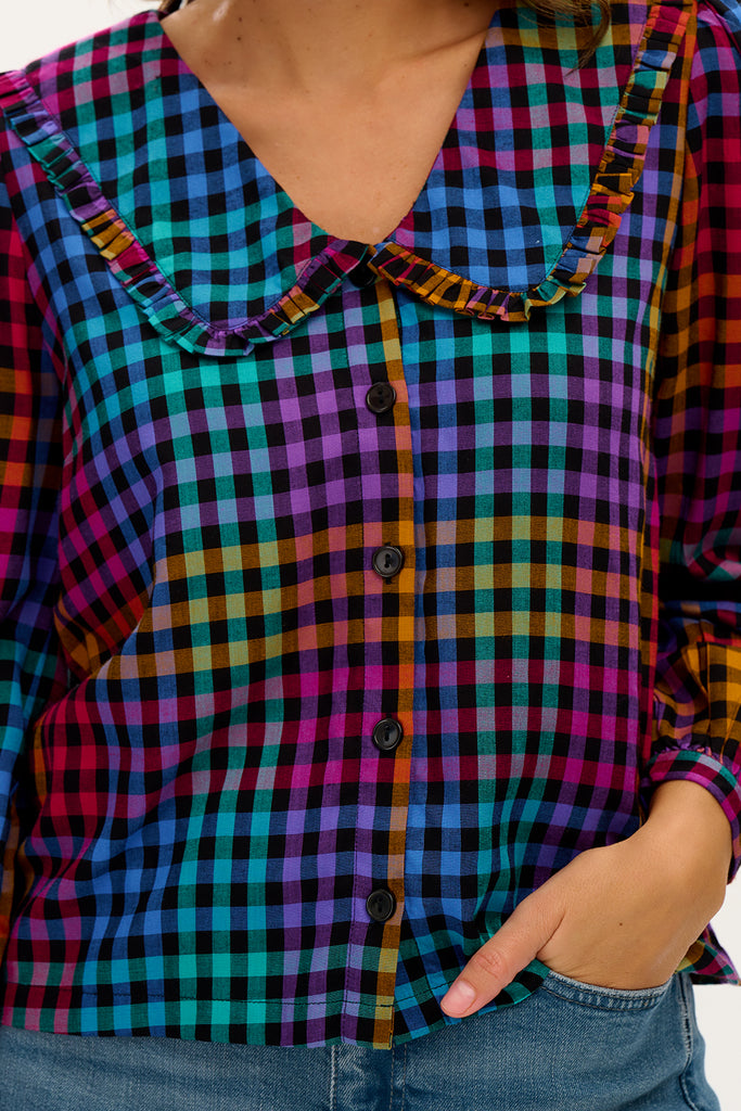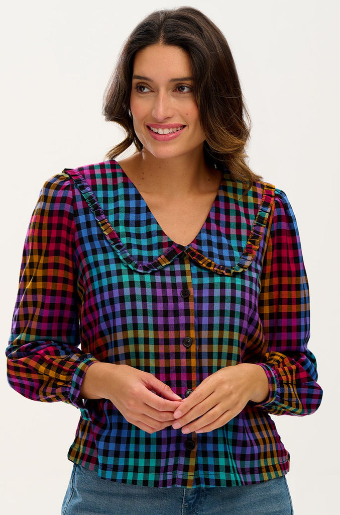 Nessie Scallop Collar Blouse - Black/Teal, Twilight Gingham