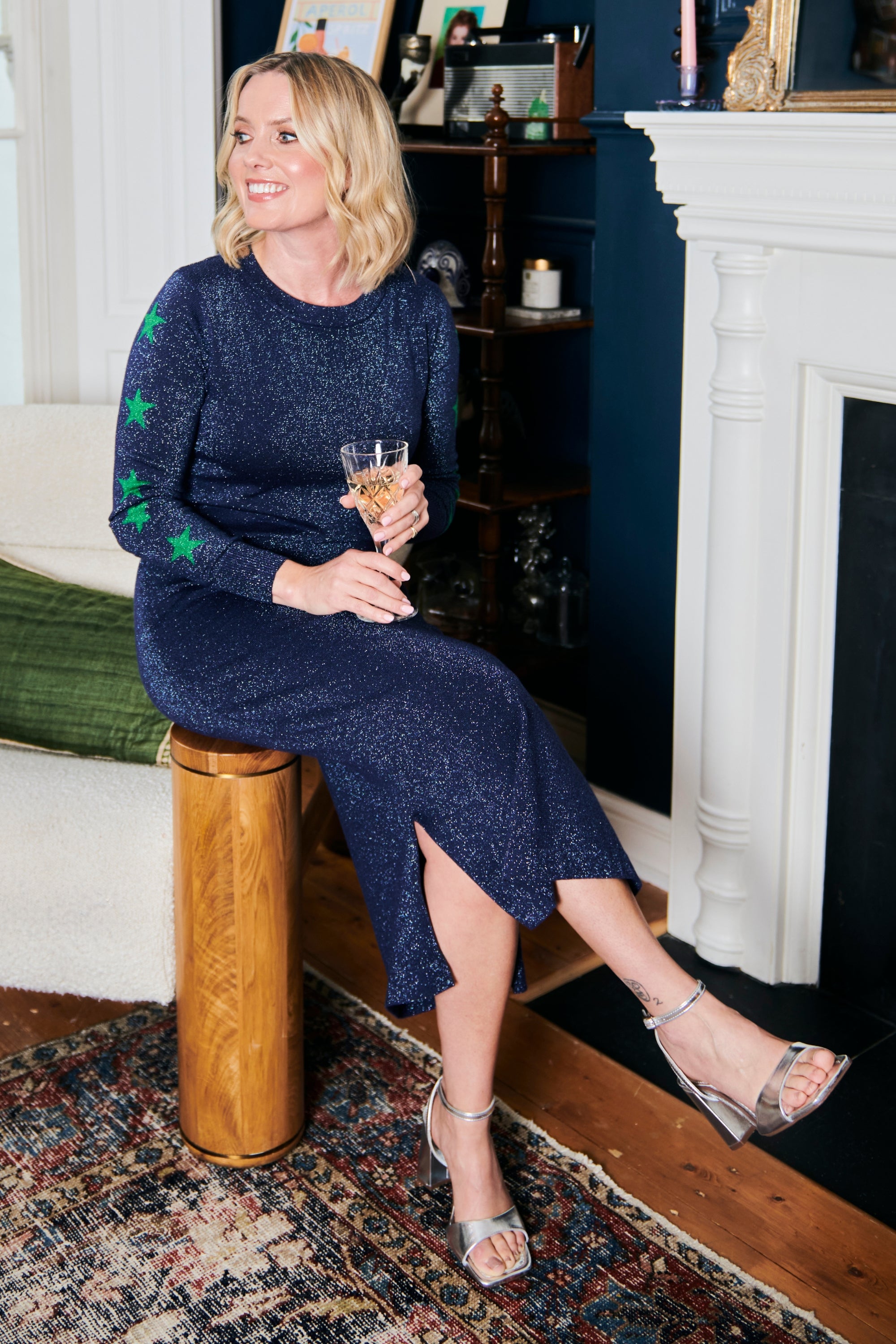 Briony Knit Midi Dress - Navy, Star Sleeve