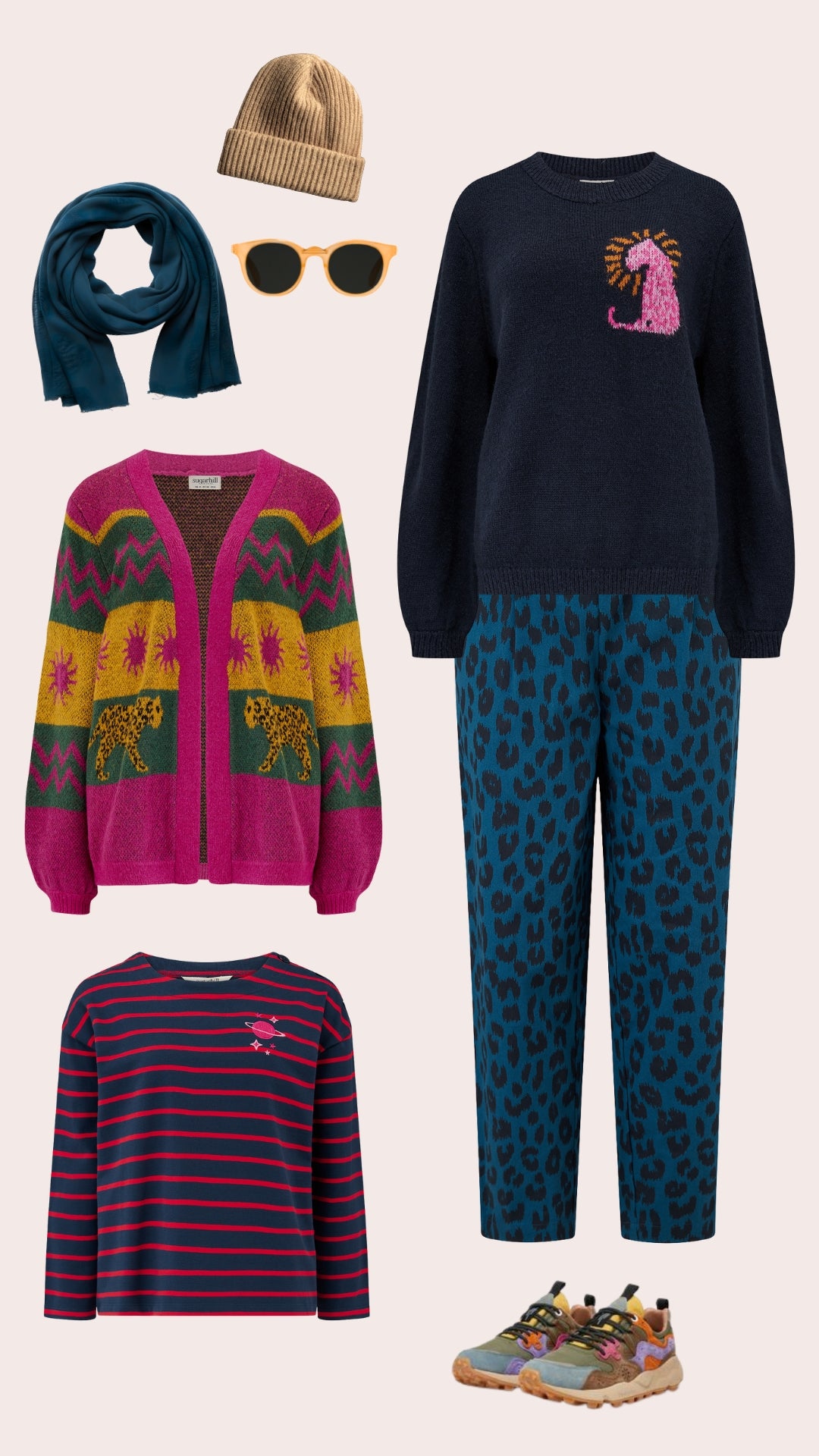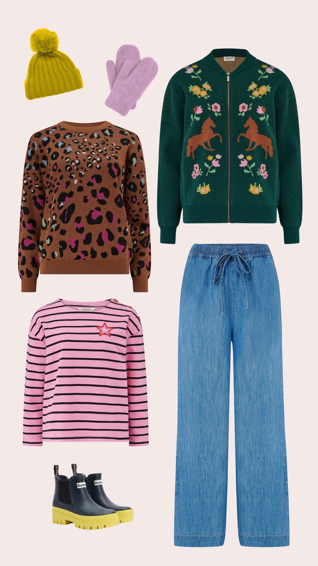More of a hibernator? Opt for playful prints, oversized knitwear and elasticated waistband trousers to hang at home - comfort is king!