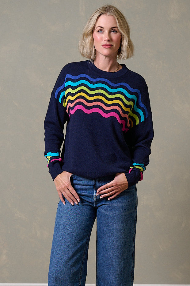 Andi Jumper - Navy, Rainbow Waves