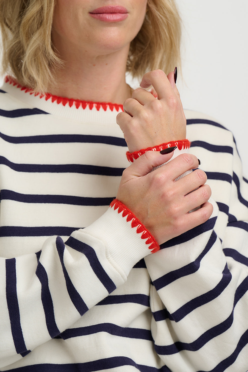 Noah Sweatshirt - Off White/Navy, Embroidery Trim