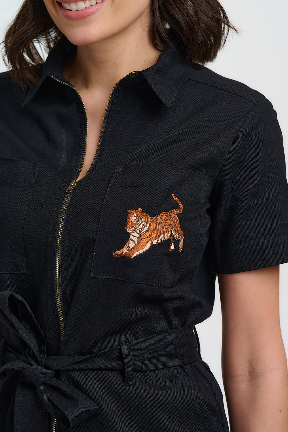 Logan Playsuit - Petrol Navy, Ikat Leopard