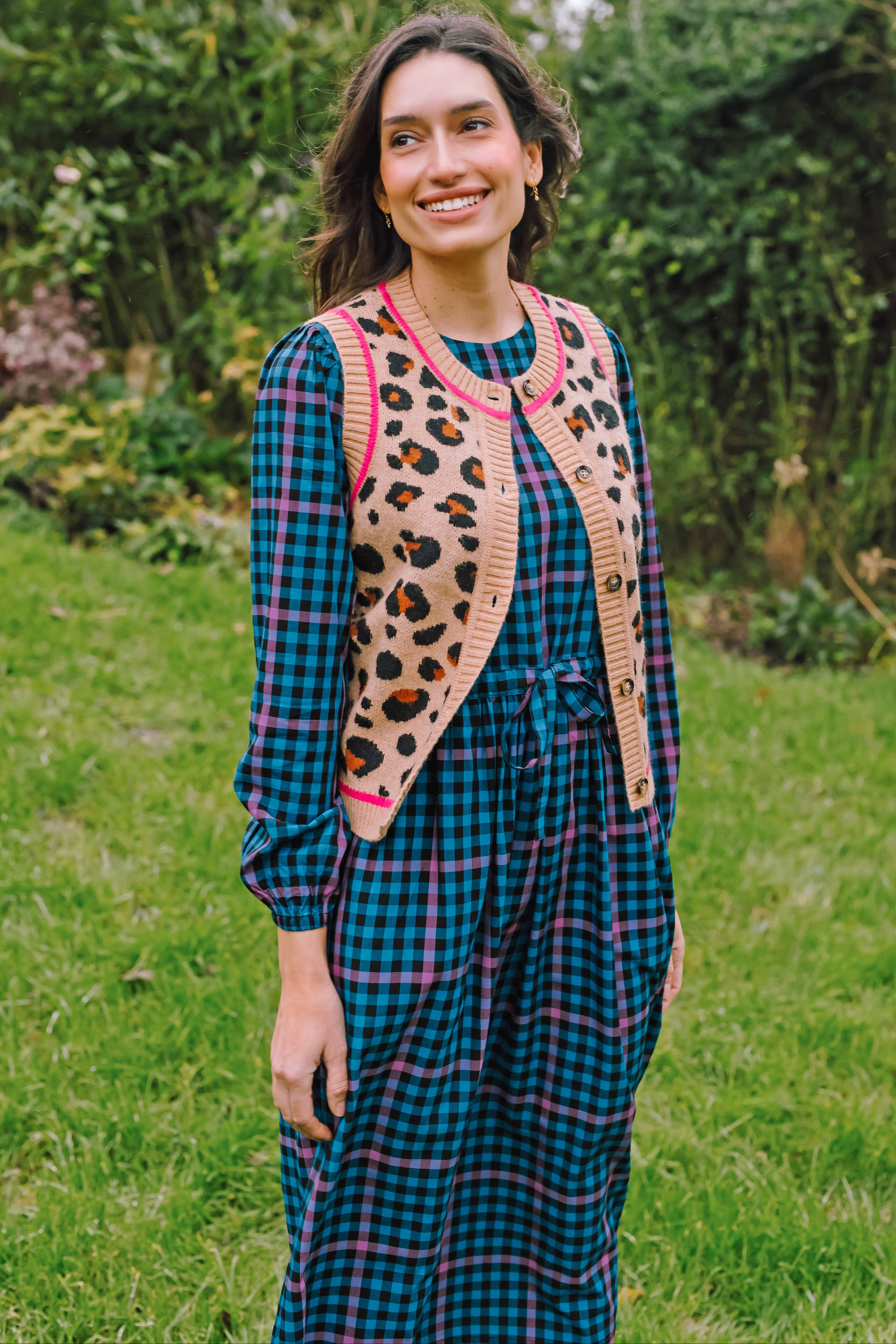 Natalie Knitted Waistcoat - Tan/Black, Natural Leopard
