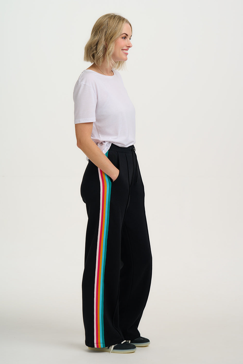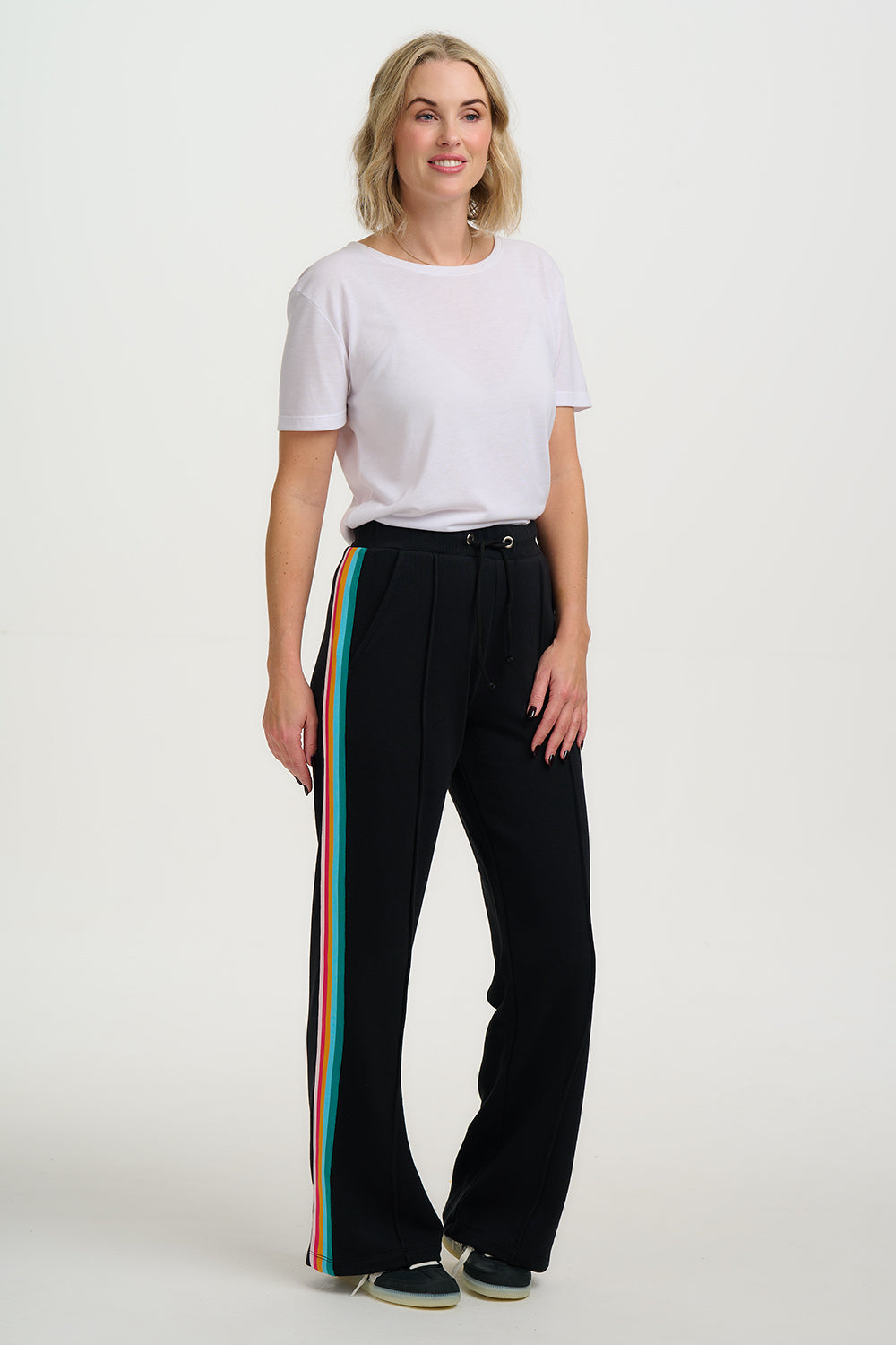 The Enya Jogger is made from soft, breathable 100% cotton for all-day comfort. Designed with a relaxed, flattering fit and finished with bold rainbow side stripes, it blends sporty ease with standout style. Perfect for everyday wear or paired with a matching top for an effortless coordinated look.