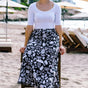The Krista Skirt is a fun new spin on our Cecilia silhouette – now with handy side seam pockets (because who doesn’t love a practical detail?). This updated midi skirt features a flattering A-line shape and an elasticated back waistband for everyday ease. We’re loving the bold abstract leopard print features, scattered pink and black brushstroke spots against a rich deep teal background, adding a pop of colour to any outfit. Pair with your fave knit now and a tee later – Krista’s got you covered all year round.