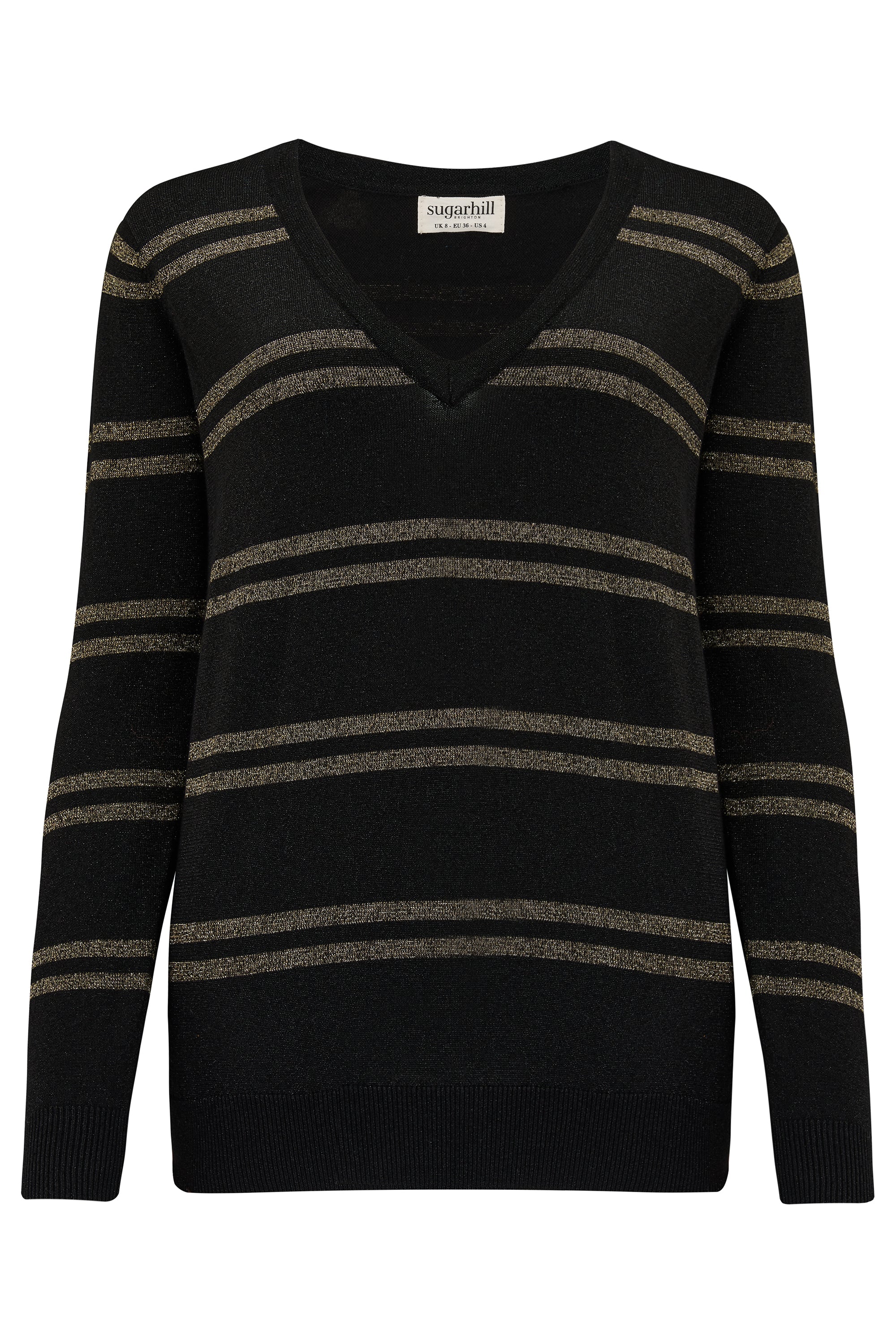 Marcella V-neck Jumper - Black, Bronze Double Stripe