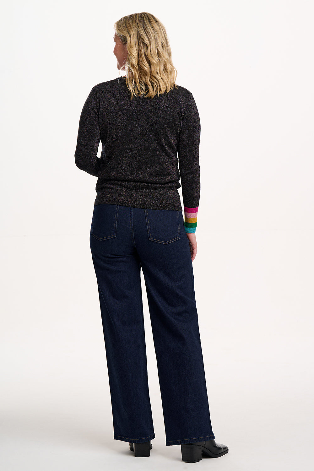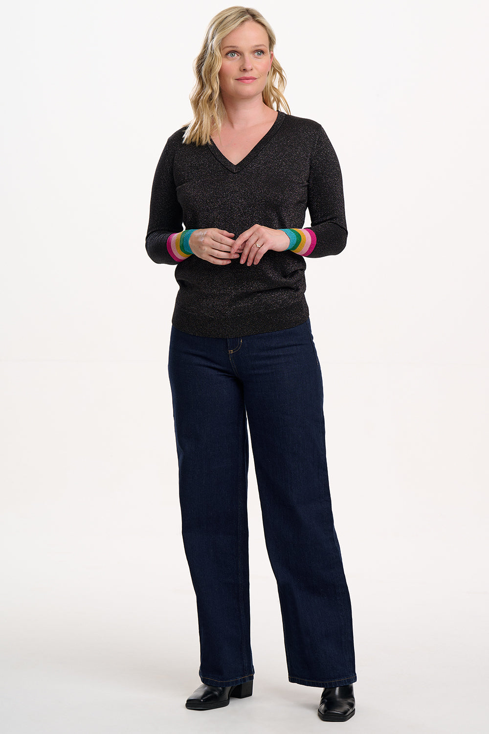 Marcella V-Neck Jumper - Black, Sparkle Cuffs