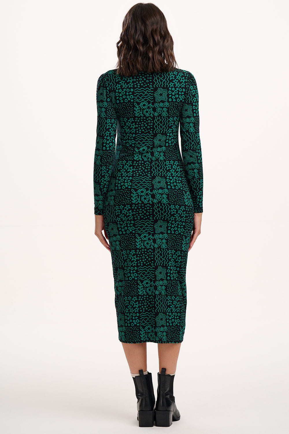 Taliah Jersey Midi Dress - Black/Green, Doodle Checkerboard