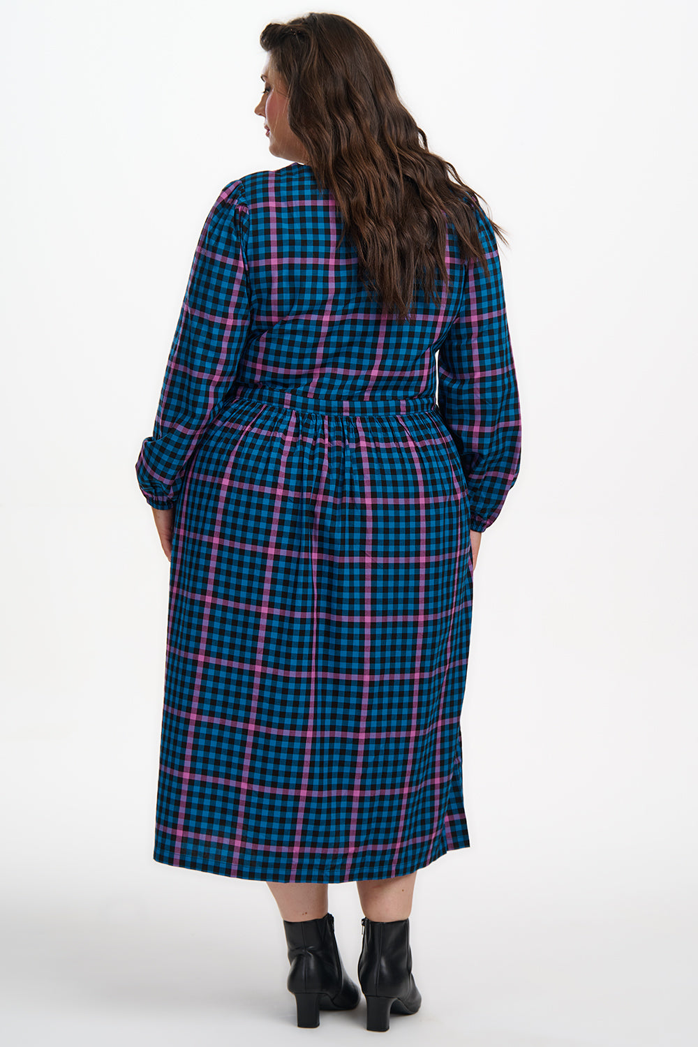 Yasmin Midi Smock Dress - Black/Teal, Twilight Gingham