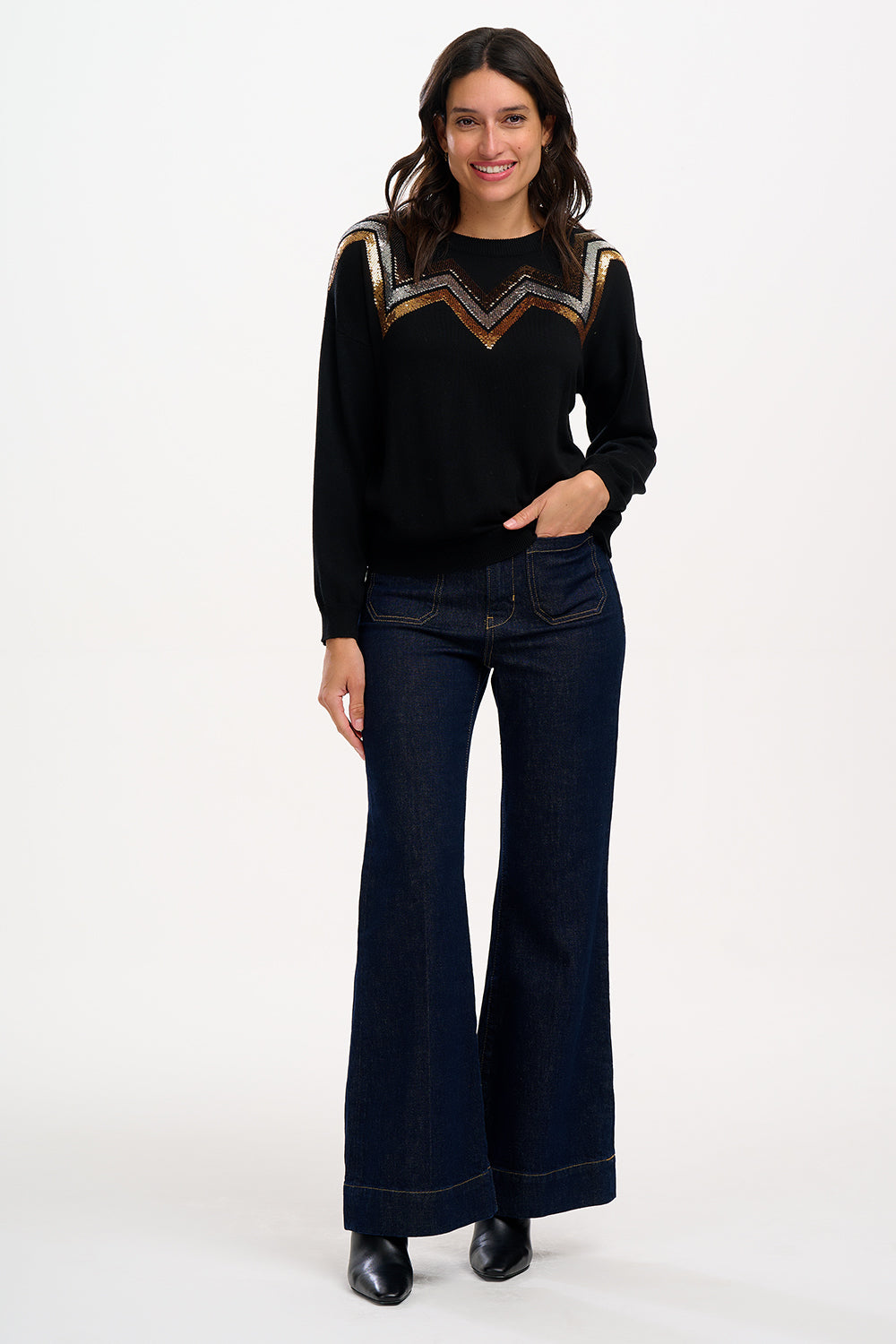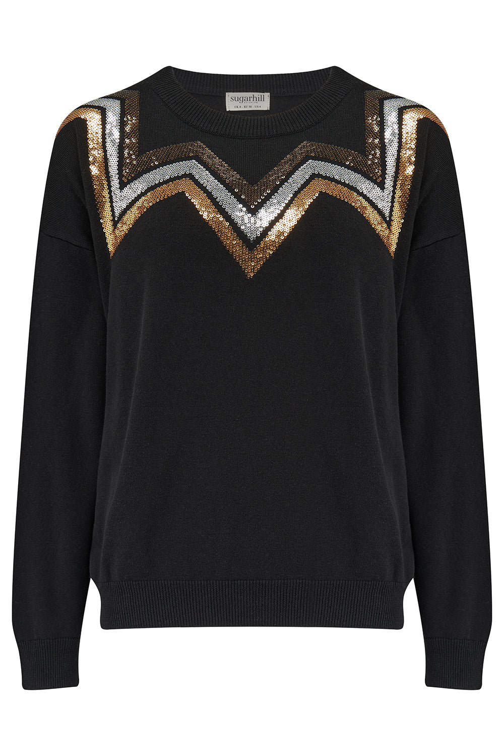 Anjali Sequin Jumper - Black, Chevron Stripes
