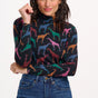 Say hello to your new favourite statement piece – the Annika Fitted Jersey Top! With its sleek high neck and long sleeves, this women’s fitted top is all about flattering lines and effortless style. We’re obsessed with all-over print of colourful giraffes on a classic black base – it’s bold, timeless, and seriously easy to dress up or down. Whether you're layering it under a blazer for work or rocking it solo with jeans for a night out, this high-neck leopard print top brings instant edge to any look. A total must-have for fans of stylish women’s clothing and standout prints!