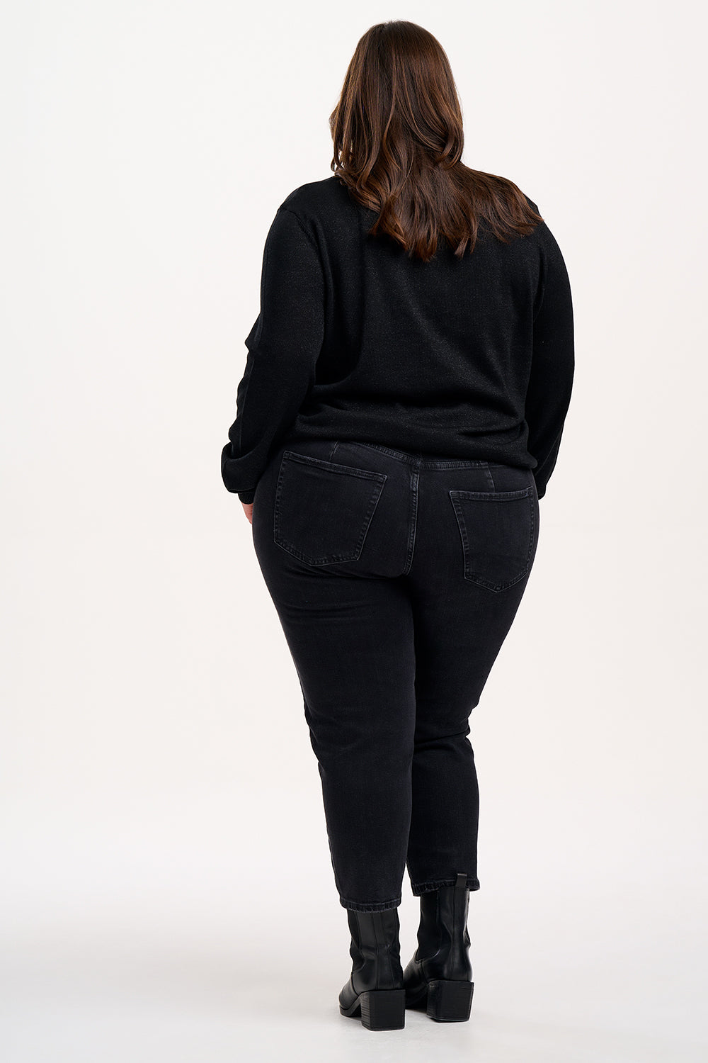 Add a spark to your wardrobe with the Astrid Jumper. Finishing at mid-hip, this crew-neck knit features our bestselling semi-fitted Rita shape, reimagined with shimmering metallic yarn for a touch of sparkle. The striking Stardust design showcases a bold pink motif across a sleek black base — perfect for adding energy and style to your everyday look.