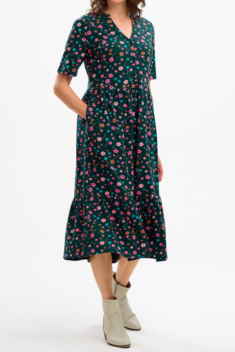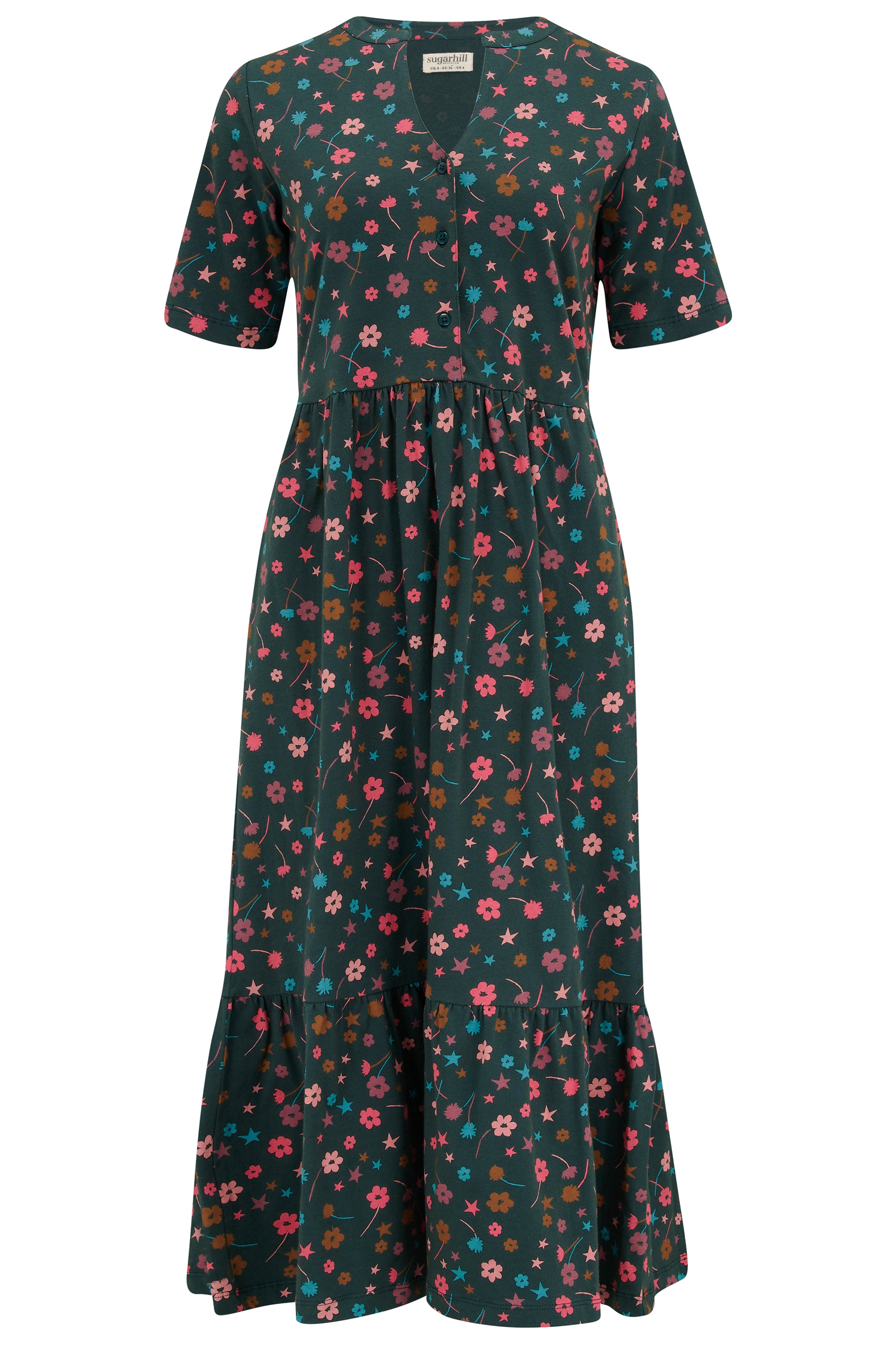 Heather Jersey Midi Smock Dress - Dark Green, Forest Floral
