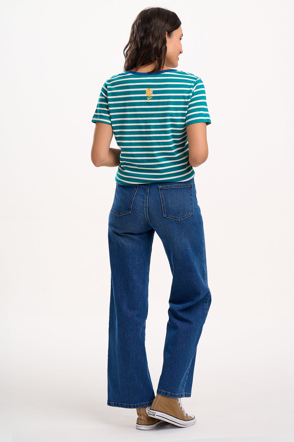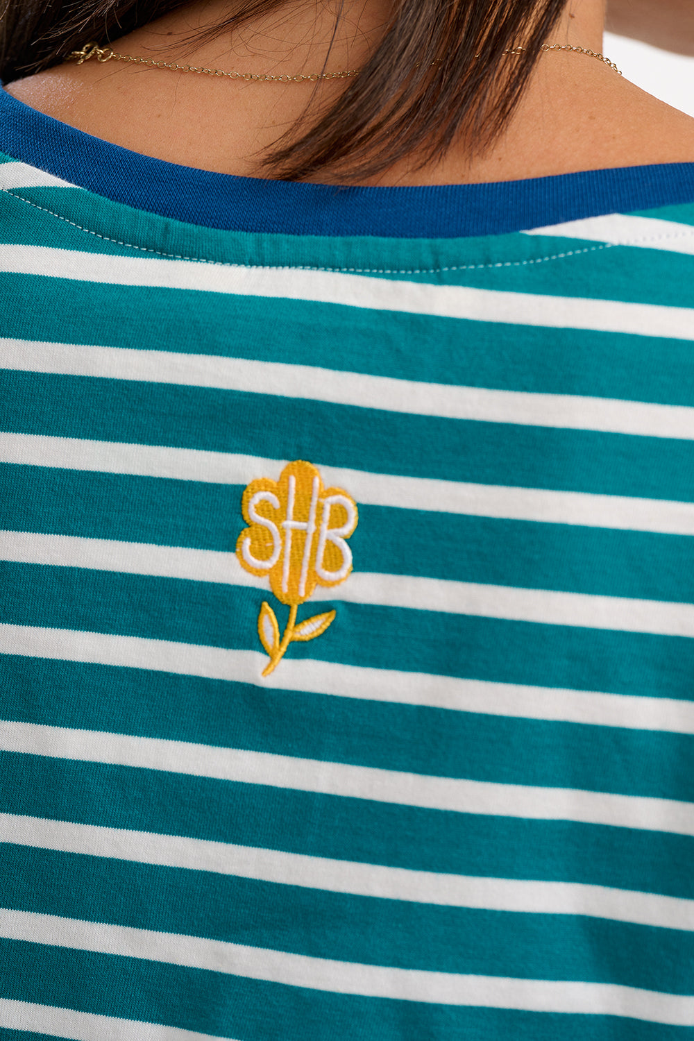 The Khloe Tee is a classic shape with a fresh new twist. We’ve kept the straight side seams and back for that easy, flattering fit, but added a deep V-neckline that you've all been asking for. Crafted from super-soft 100% Organic Cotton, it feels just as good as it looks. And for a subtle finishing touch? A delicate SHB embroidered logo on the back. Simple, sustainable, and effortlessly stylish – the Khloe is your new everyday go-to.