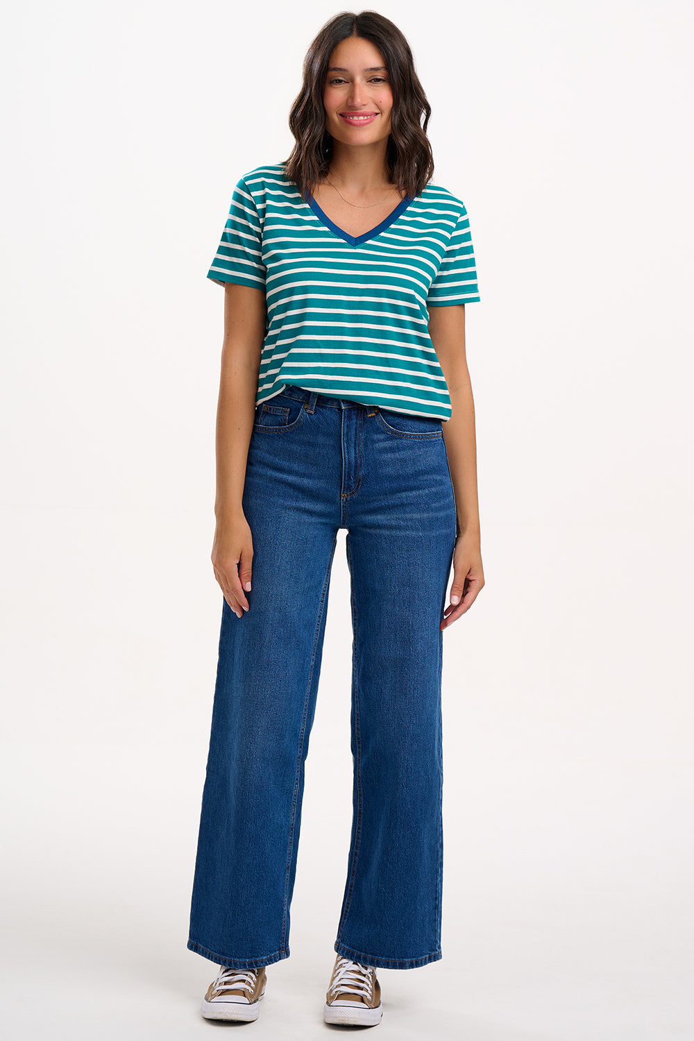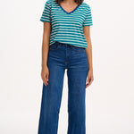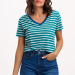 Khloe V-Neck T-Shirt - Green/Off White, SHB Flower