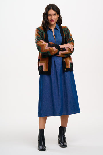 Kirsty Midi Smock Dress - Mid-Blue Denim