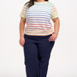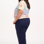 Say hi to your new everyday fave – the Maggie Tee. With its classic fit and timeless retro stripes, this top is all about effortless style. But the real standout? That super-soft 100% Organic Cotton base. It’s comfy, breathable, and kind to the planet – what more could you want? Whether you’re tucking it into jeans or layering it under a jacket, this organic cotton striped tee brings just the right mix of laid-back and pulled-together. A total staple for any sustainable wardrobe