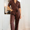Meet the Meredith Boilersuit, your new go-to for effortless cool and everyday ease. Cut in a relaxed boilersuit silhouette, Meredith features an open shirt collar, a functional zip front opening, short sleeves, and a self-fabric belt to cinch the waist for a flattering shape. Designed in a timeless deep navy leopard spots scattered across a rich brown background, this versatile piece strikes the perfect balance between smart and casual. Whether styled with trainers for laid-back vibes or dressed up with boots, the Meredith Boilersuit is a must-have wardrobe hero.